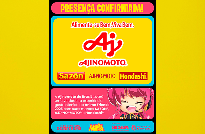 Reconhecida por sua tradição e inovação no setor de alimentos, a Ajinomoto promoverá ações que reforçam a sua forte ligação com a cultura japonesa e com os fãs brasileiros. O “Momento Ajinomoto”, uma deliciosa degustação de yakissoba com o tempero HONDASHI® que acontecerá nos principais palcos do festival, este ano, será acompanhado da marca AJI-NO-MOTO®, que, por sua vez, levará ao público a degustação de um irresistível caldinho de feijão com um toque único do realçador de sabor. Além disso, como uma das marcas patrocinadoras do evento, a SAZÓN®, com o “Tempero SAZÓN® para Pipoca sabor Manteiga”, será a pipoca oficial do Anime Friends 2025, onde o consumidor poderá ganhar um balde exclusivo e personalizado da marca.