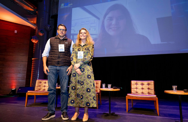 O painel contou com a participação de Alexandro Gandur, Diretor de Planejamento Estratégico, Governança, Processos, Performance e ESG/SMA da EMS, e Carolina Gutierrez Prado, Diretora de Comunicação da Intel para a América Latina participando de forma remota. A mediação ficou a cargo de Béatrice de Toledo Dupuy, Gerente Executiva de Comunicação Corporativa e Sustentabilidade da Santos Brasil.