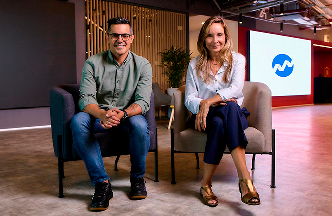 Felipe Gasparetto (esq.), novo Diretor-Executivo de Martech e Insights do Grupo Dreamers, ao lado da Chief Managing Director, Livia Marquez (dir.)