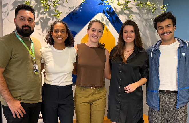 Thais Medina, fundadora da Business Factory, ao lado de Vinicius Gonçalves, diretor de Marketing, Comercial e Relacionamento da Tour House Viagens Corporativas e equipe