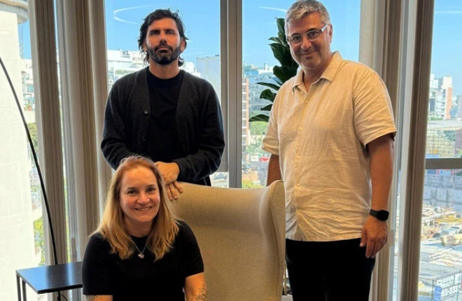 Paula Marsilli, nova vice-presidente de contas regionais da Monks, junto de Bruno Lambertini, CEO de marketing services e de Sebastián Caramés, vice-presidente executivo da agência para a América Latina