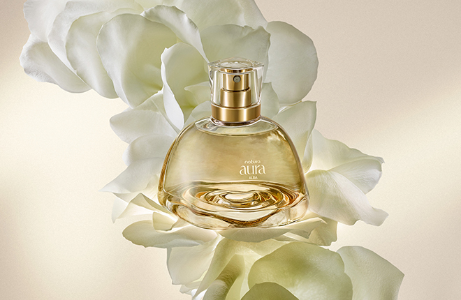 Segundo Fred Gelli, CEO da Tátil Design, uma das inspirações para o design do frasco veio do próprio fundador da Natura, Luiz Seabra, que entregava uma rosa branca a quem entrava na loja da Oscar Freire, em 1969. “’Natura Aura Alba’ é um projeto que carrega o desejo de transformar um gesto simbólico em design”, conta.